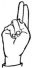 На ћирилици написано КАТАРИНА ЈОВАНЧЕВИЋ састоји се из 18 слова [?]. Исписано ћириличном једноручном азбуком за глувонеме: